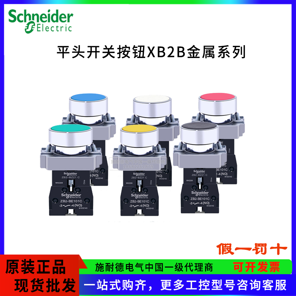 施耐德XB2BA系列金屬按鈕Ø22 國產金屬平頭按鈕指示燈XB2BA31C代理,顏色多選