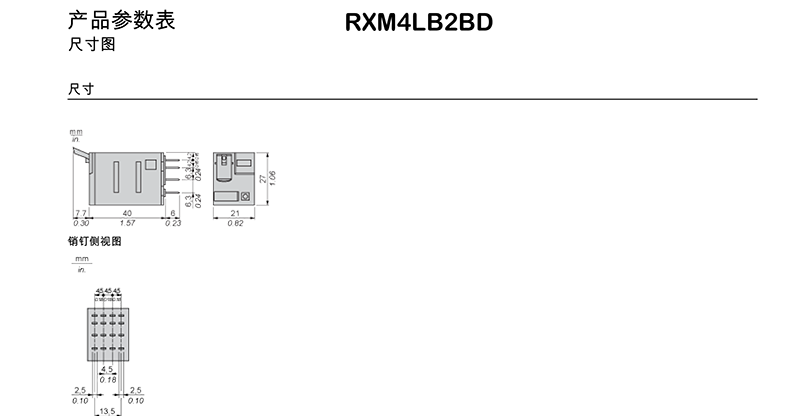 施耐德繼電器一級代理商,施耐德RXM中間繼電器,施耐德小型繼電器,施耐德插入式繼電器RXM4LB2BD產品尺寸圖