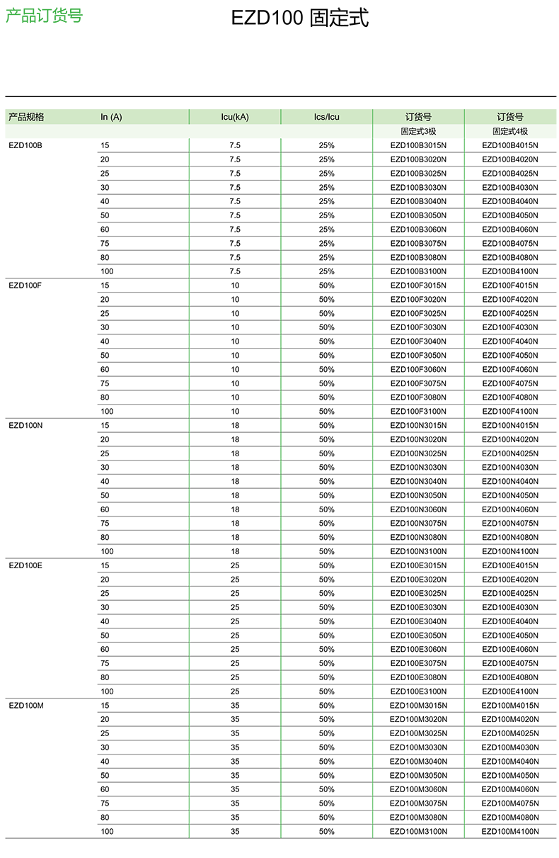 簡介內容:施耐德塑殼斷路器EZD系列配電用固定式斷路器EZD100